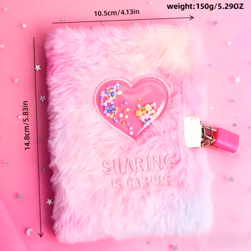 - A6 plush, flowy particle heart-shaped lock notebook